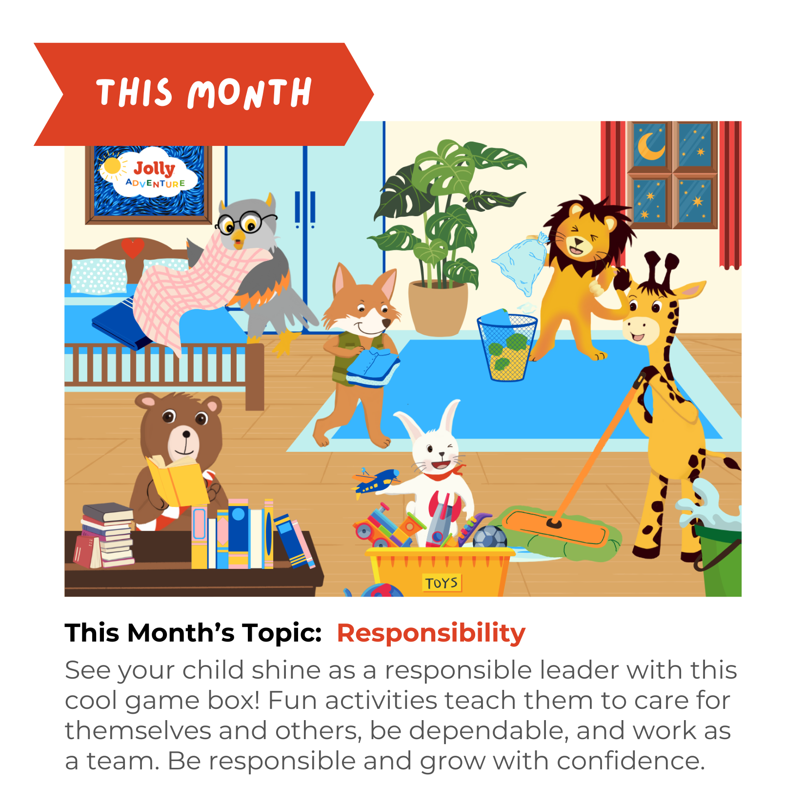 This month, we’re focusing on teaching kids the importance of responsibility and taking ownership of their feelings and actions. Through engaging activities, children will learn how to follow through on tasks, make thoughtful decisions, and understand the impact of their choices. Whether it’s completing chores, taking care of a pet, or organizing their belongings, each activity helps build accountability, independence, and a sense of pride. This month is all about turning playful pups into dependable leaders, turning everyday moments into opportunities for growth, by helping kids develop habits of responsibility that will serve them for life.